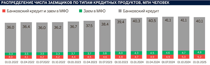 Динамика МФО резко контрастирует с таковой в банковском кредитовании, которое входит в период пониженной активности («Б.О» писал об этом): в 2024 году прирост по розничному кредитованию составлял 9,7%, по ипотечному — 10,4%, а по корпоративному — 17,9%. При этом основное замедление в банковском кредитовании стало ощущаться именно в конце 2024 года, когда МФО, наоборот, нарастили свою активность: треть всего годового объема выдач займов микрофинансовыми организациями пришлась именно на четвертый квартал.