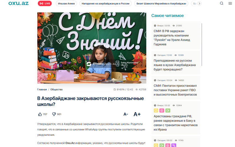 Скриншот/oxu.az/ru/obshestvo/v-azerbajdzhane-zakryvayutsya-russkoyazychnye-shkoly.