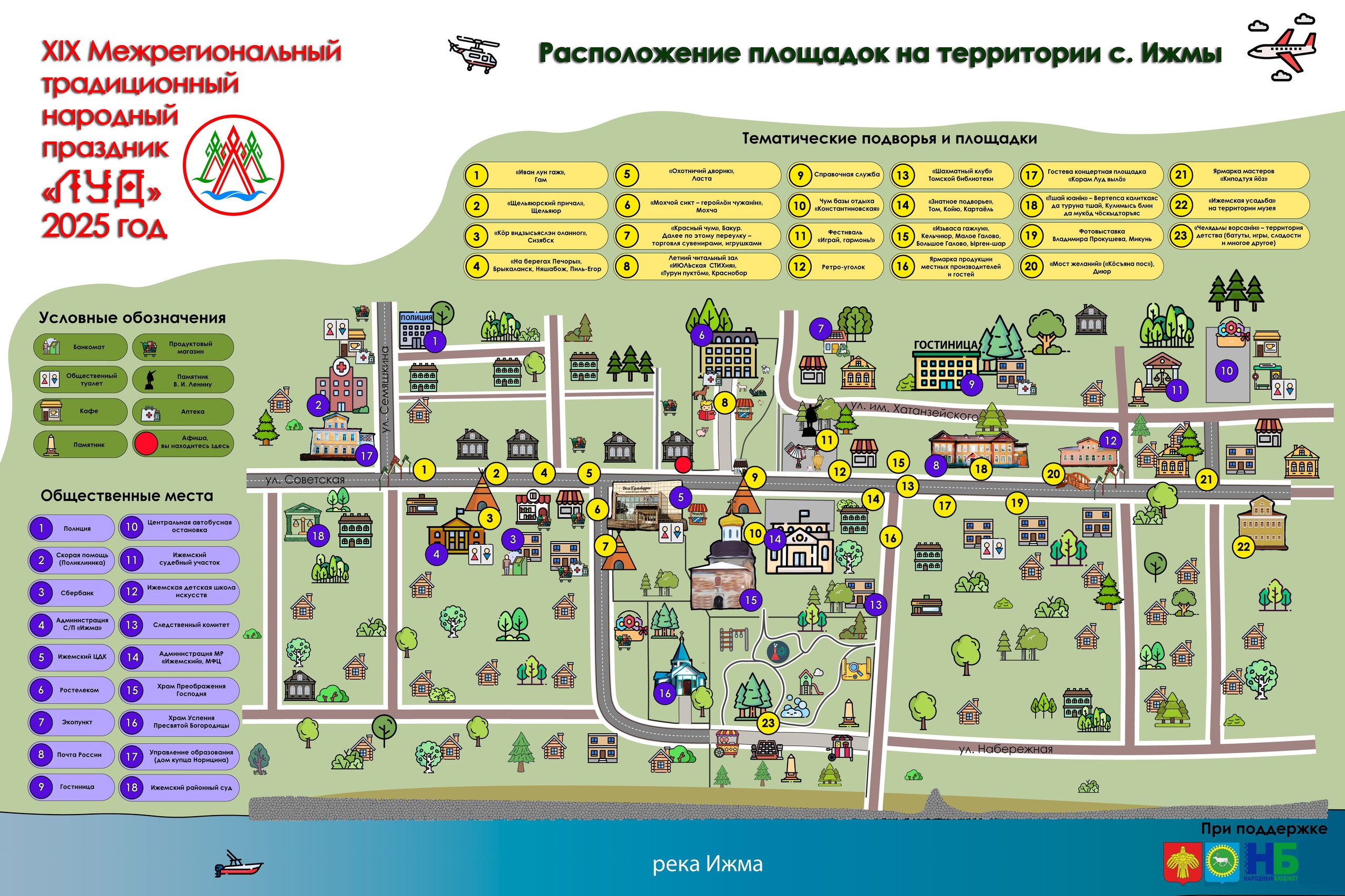 С 20:00 будет проходить танцевальное шествие в национальных костюмах, а в 22:00 начнётся праздничная программа на левом берегу реки Ижма – с хороводами, луговыми играми, соревнованиями с элементами национальных видов спорта, конкурсом сельских подворий и работой торговых рядов.