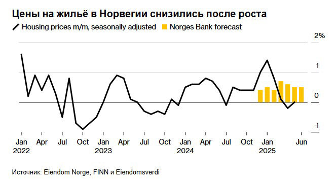 Цены на жилье в Норвегии в мае 2025 года остались без изменений с учетом сезонности, сообщает Bloomberg со ссылкой на данные Real Estate Norway. Это стало продолжением снижения на 0,2% в апреле – первого за девять месяцев. При этом Центральный банк страны (Norges Bank) ожидал повышения на 0,5%.