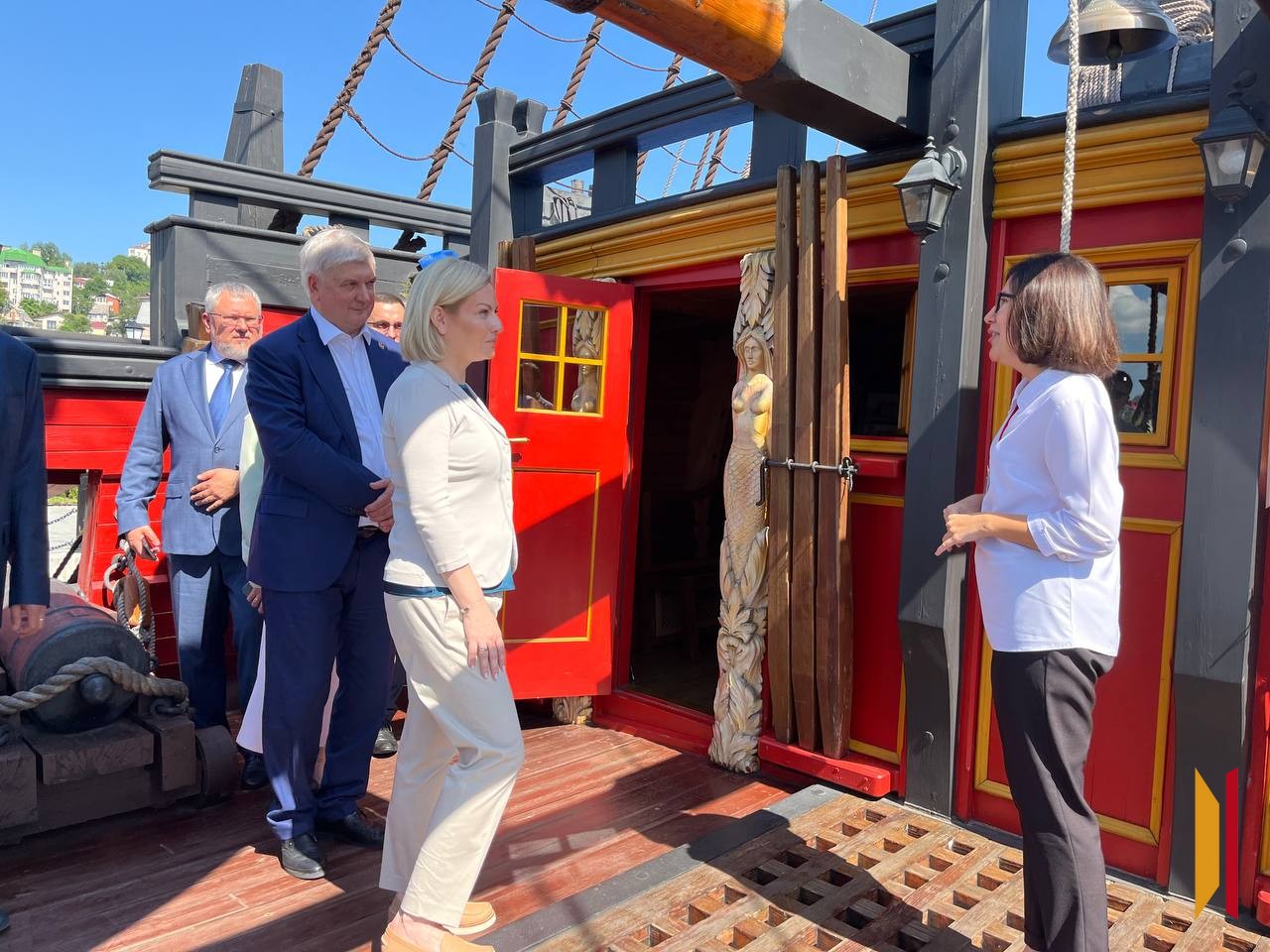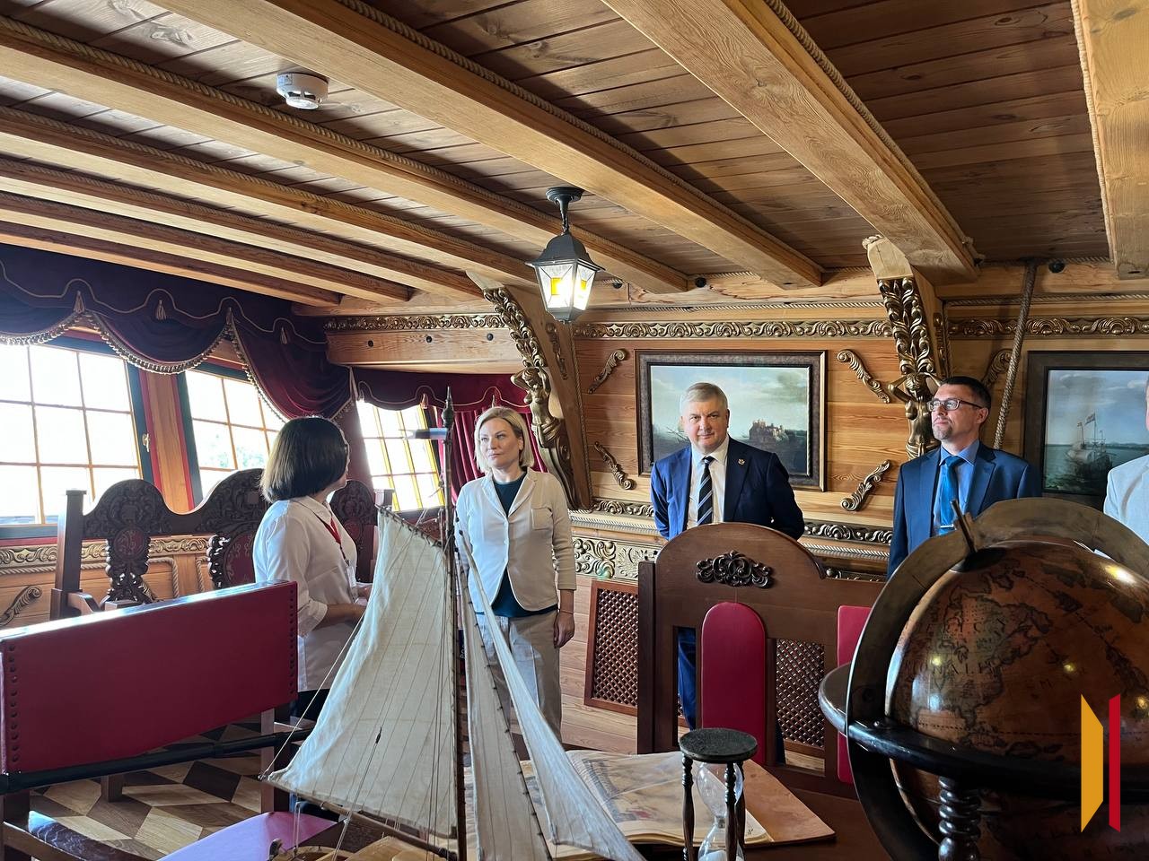 Следующий пункт программы – модель линейного корабля «Гото Предестинация». Министру культуры РФ рассказали о разработке проекта музейного комплекса «Петровский остров», центральным элементом которого станет здание Цейхгауза – будущей экспозиционной площадки, посвященной истории судостроения и эпохе Петра Великого. Музейный комплекс «Петровский остров» как отдельная структура был выделен в текущем году. В конце мая был представлен директор – Николай Комолов, который более 14 лет работал в управлении культуры администрации Воронежа.