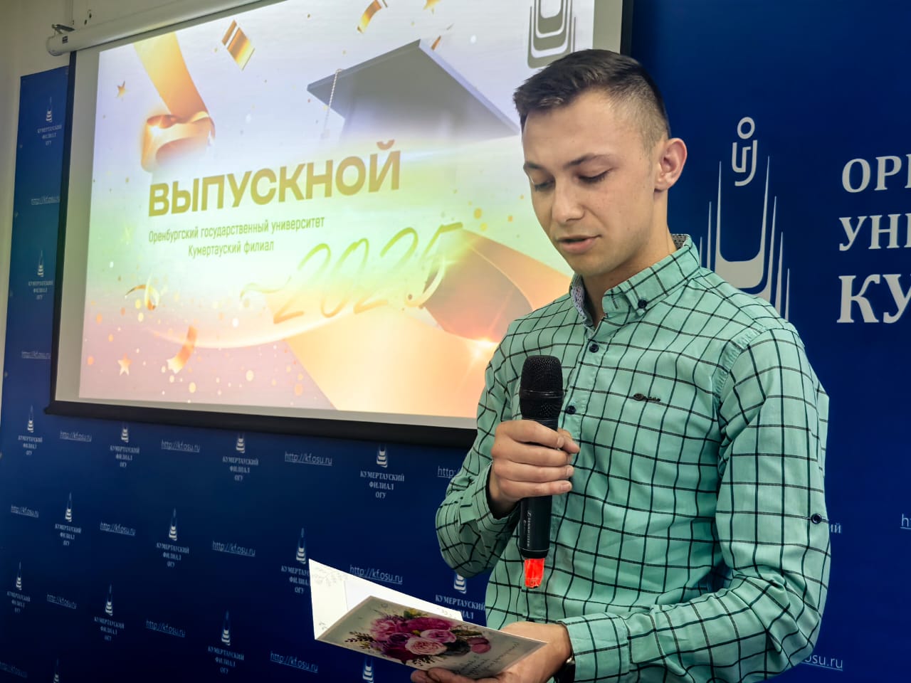 Напутственные слова выпускникам Кумертауского филиала ОГУ в праздничной атмосфере произнесла директор, Татьяна Сазонова. Она поздравила с успешным завершением их обучения и пожелала больших достижений в их будущей профессиональной деятельности. Татьяна Васильевна в своей речи особо отметила значимость знаний и умений, приобретенных в стенах Филиала, и посоветовала выпускникам непрерывно работать над собой и своим развитием.