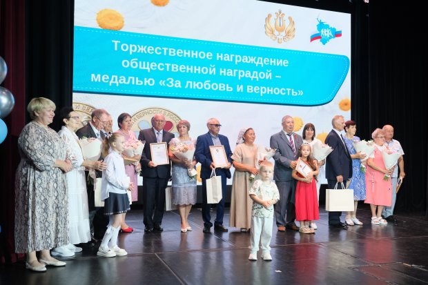 Шесть семейных пар наградили за победу в региональном этапе конкурса «Семья года» в различных номинациях, еще 28 получили медали «За любовь и верность», они прожили в браке более 25 лет.