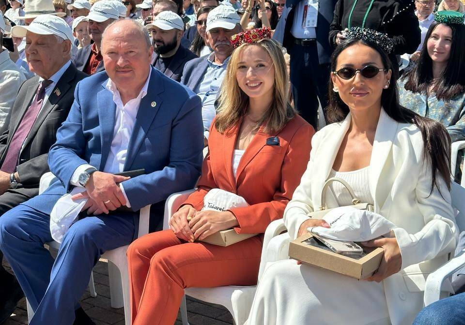 На фото: вице-премьер РТ – полпред РТ в РФ Равиль Ахметшин с почетными гостьями Московского Сабантуя Камилой Валиевой и Алсу Абрамовой