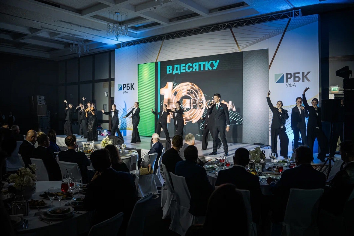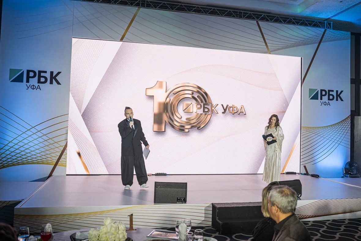 Телеканал РБК Уфа отпраздновал свое 10-летие. Друзья и партнеры медиахолдинга собрались на торжественном вечере в отеле Sheratonplaza в центре города. Мероприятие провели ведущая программы «Утро» на телеканале «Москва 24» Анастасия Бородина и московский шоумен Артем Куба.
