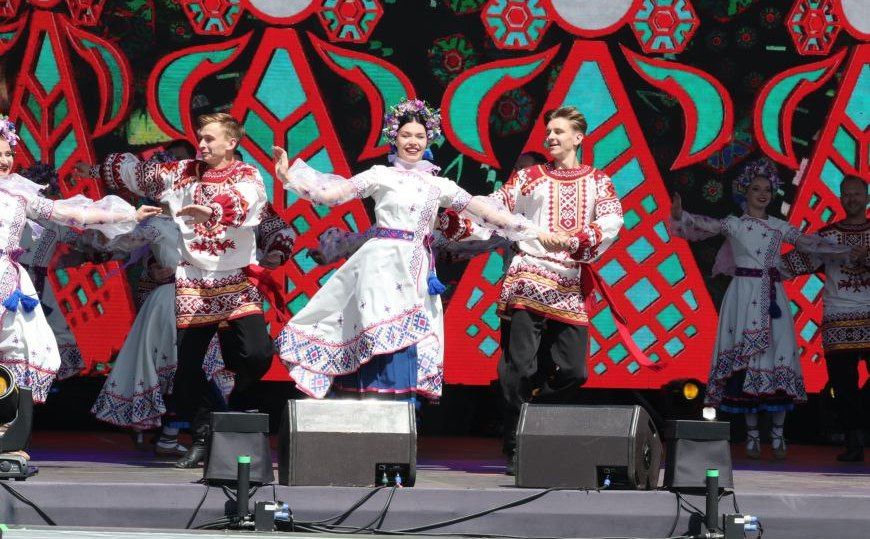 Первый блок рассказывал о традициях народного фольклора. В программе – белорусские и русские народные песни: любимая «Ульянiца» и напевная «Ой, то ни вечер…», дуэт баянистов «Неба Саунд» в тандеме с хореографическим ансамблем «Весна» и др.