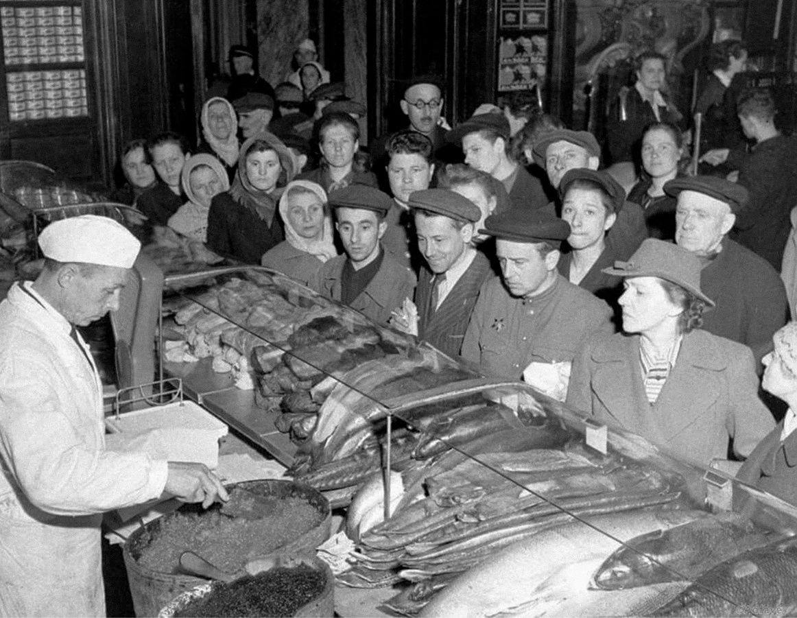 В мясном магазине. Москва, 1951