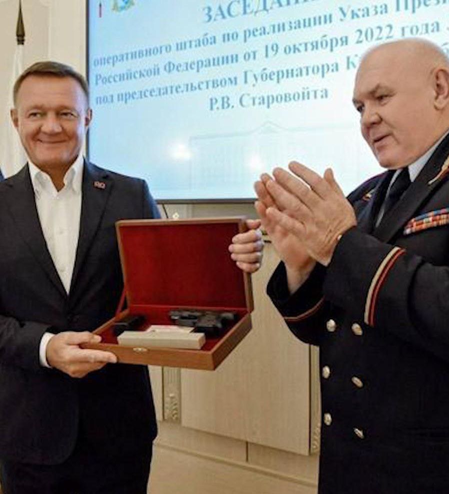 Роману Старовойту вручают наградное оружие. Фото: телеграм-канал
