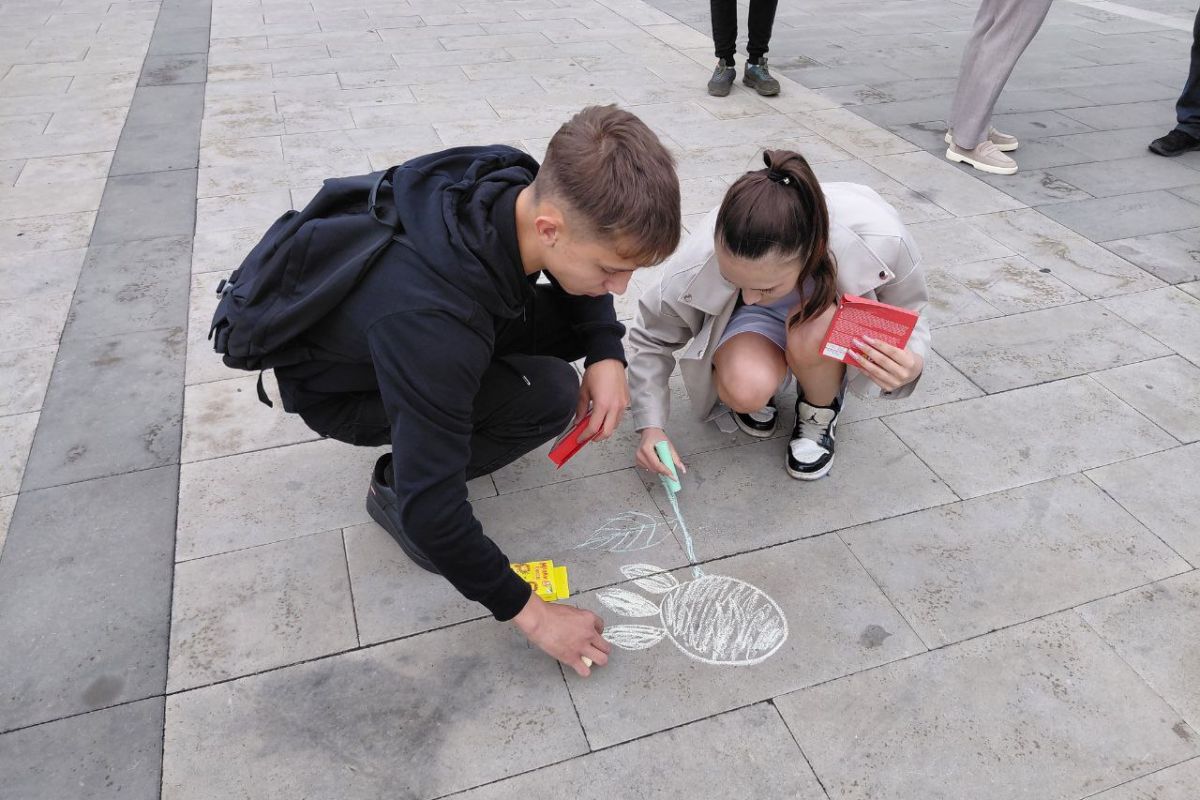 А на Театральной площади Читы «Единая Россия» и «Молодая Гвардия» провели акцию «Ромашковое поле на асфальте». Горожане рисовали символы праздника и фотографировались на память.