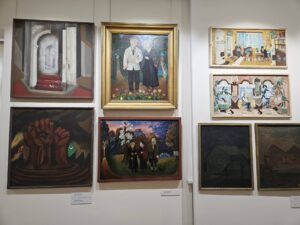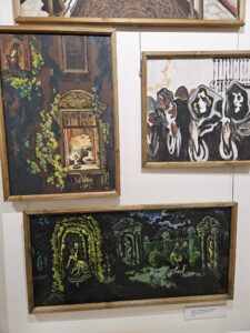 На выставке представлены живописные работы мастера – его эскизы, раскадровки, чертежи декораций, арт-объектов, созданные за десятки лет профессиональной деятельности в ТО «Экран» и дачной жизни в Абрамцево.