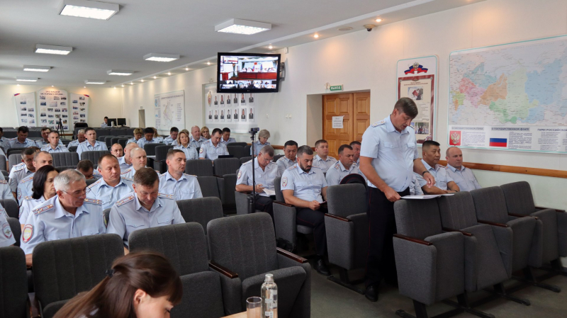 В актовом зале МВД по Республике Алтай состоялось итоговое совещание, на котором были озвучены результаты работы ведомства в первом полугодии 2025 года. Мероприятие прошло под руководством министра внутренних дел по Республике Алтай генерал-майора полиции Дмитрия Трощилова. С основным докладом об итогах оперативно-служебной деятельности выступила начальник Штаба МВД по Республике Алтай Елена Градобоева.