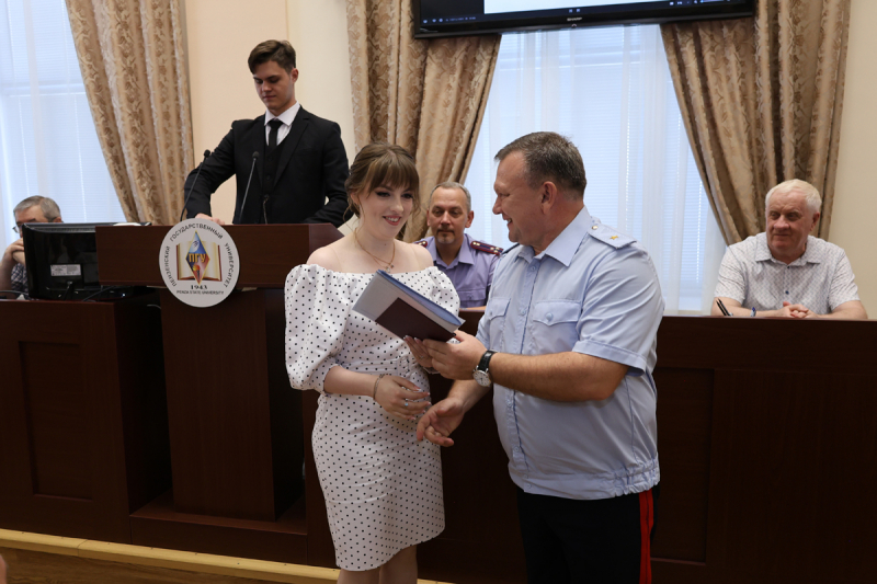 После напутственного слова студенты юридического института, приложившие особые старания и трудолюбие, получили красные дипломы из рук начальника регионального УМВД.
