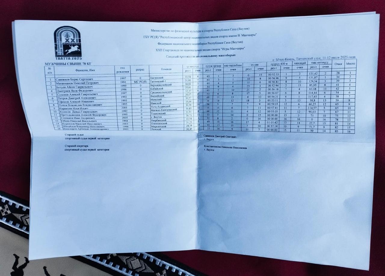 Отметим серебряную медаль двукратного чемпиона Игр Манчаары по национальному многоборью Николая Матаннанова, который на родине отдал все силы. Ему 34 года, он набрал 34 очка, заняв первое место в мас-рестлинге и перетаскивании мешка (131 м 87 см).