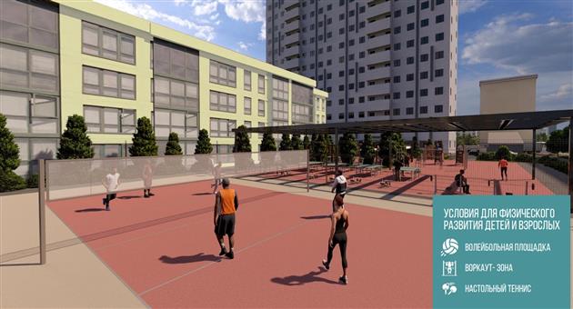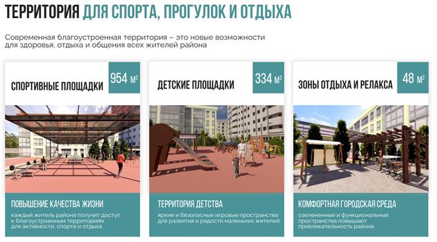 Также застройщик обещает благоустроить 1,3 тыс. кв. метра территории, включая организацию спортивных и детских площадок, зон релакса и отдыха, высадку деревьев и клумб.