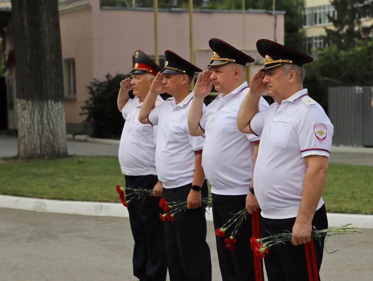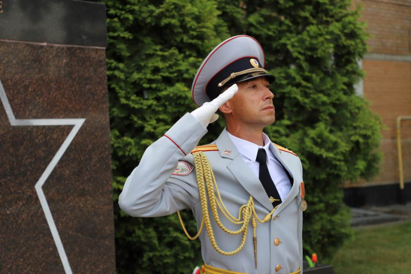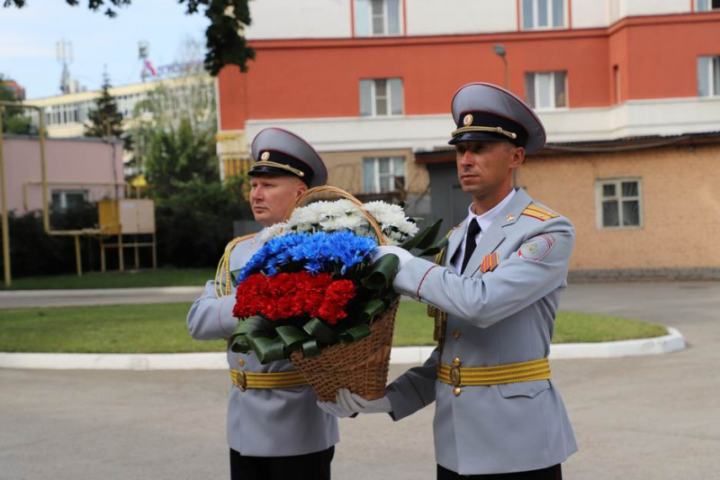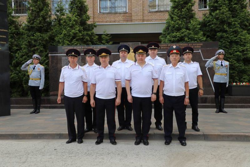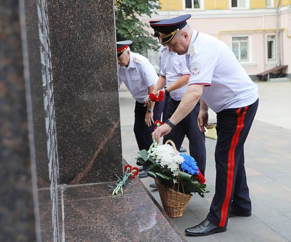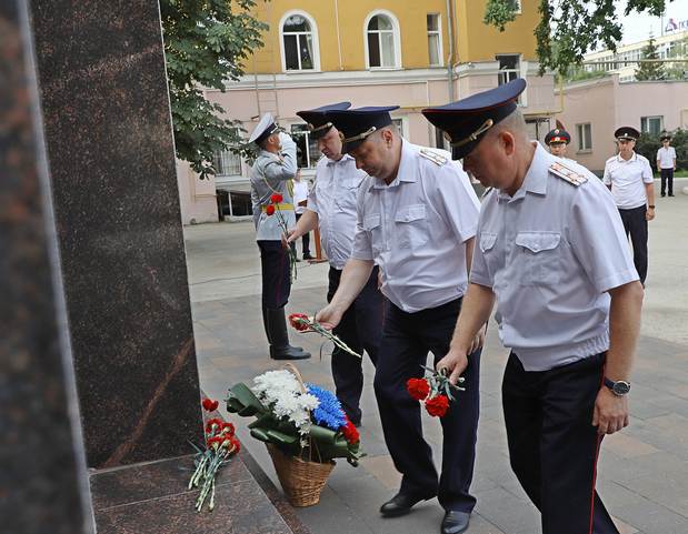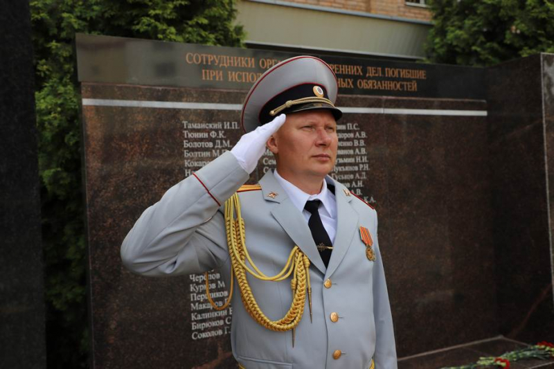 Цветы к Памятнику сотрудникам органов внутренних дел Рязанской области, погибшим при исполнении служебных обязанностей и в боях Великой Отечественной войны возложили заместитель начальника Договорно-правового департамента МВД России генерал-майор внутренней службы Дмитрий Глебов, начальник отдела организации физической подготовки и спорта Главного управления по работе с личным составом МВД России полковник полиции Константин Зайцев, начальник УМВД России по Рязанской области генерал-майор полиции Владимир Алай, председатель Общественной организации ветеранов внутренних дел Рязанской области Валерий Матвеенко, заместители начальника УМВД России по Рязанской области.