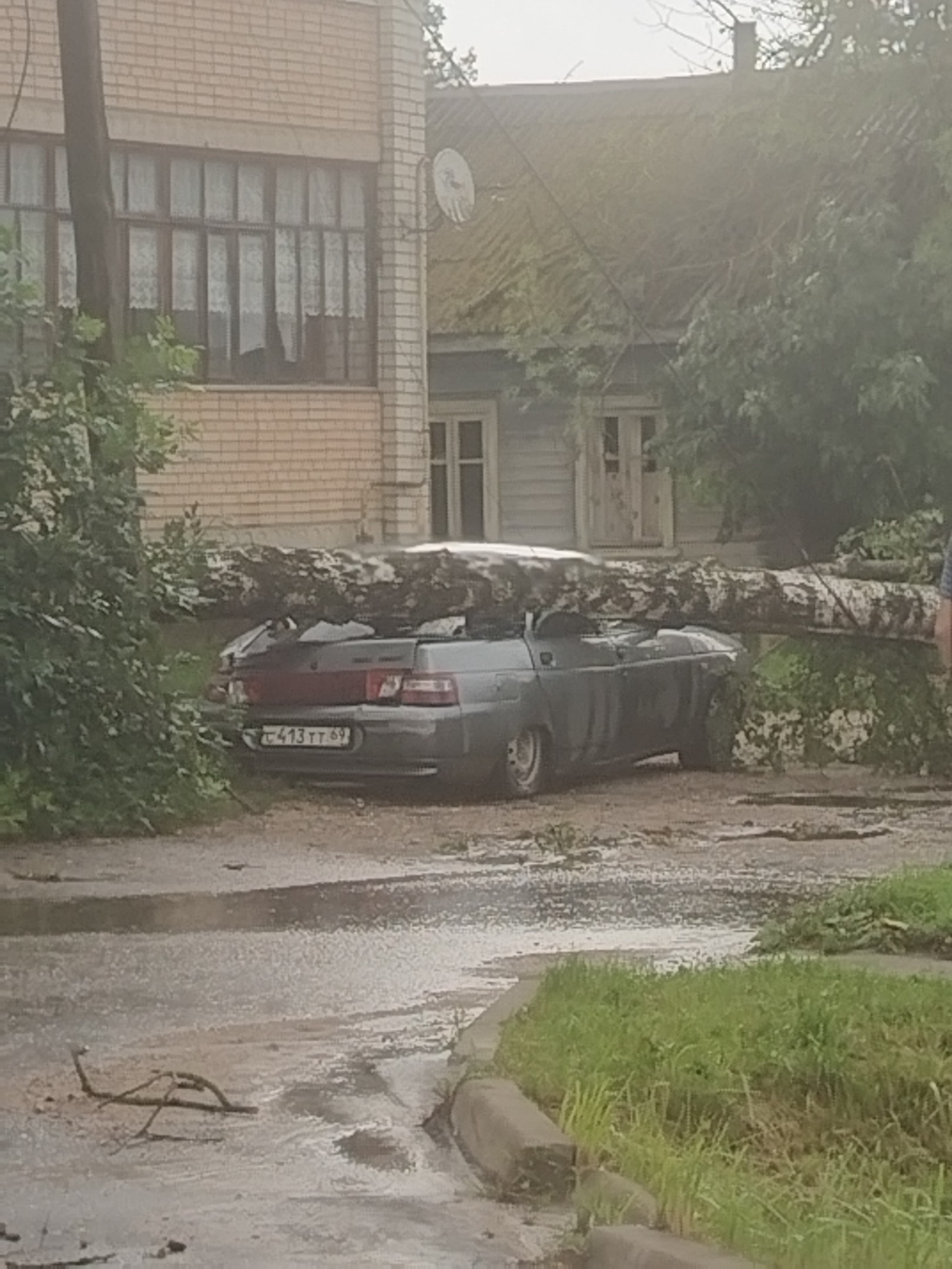 15 июля возле ЗАГСа в городе Зубцов Тверской области на машину упало дерево. Фото опубликовали в группе “Подсмотрено Зубцов”.
