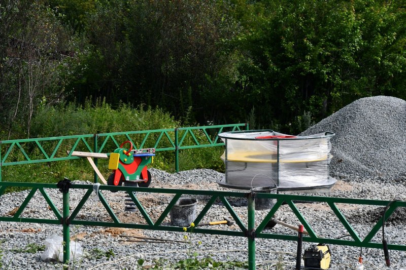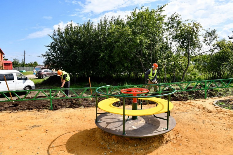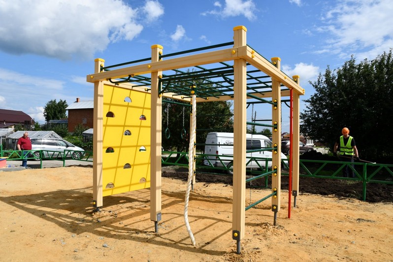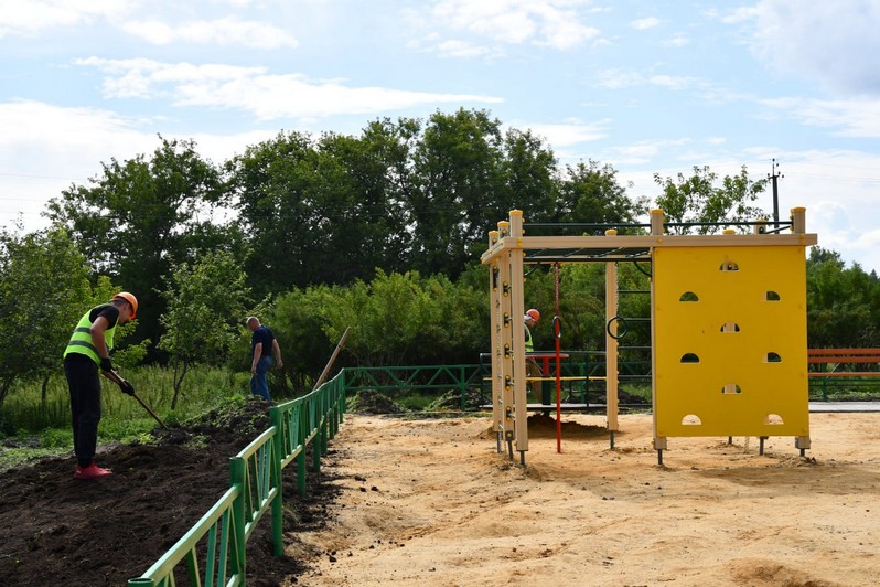 На сегодняшний день подрядчик – ИП Волянский А.Б. - уже выполнил ряд работ. В Селезнях сделано ограждение площадки, установлены игровые элементы, малые архитектурные формы. В Бижеляке пока установлено ограждение, на место доставлена часть игровых элементов.