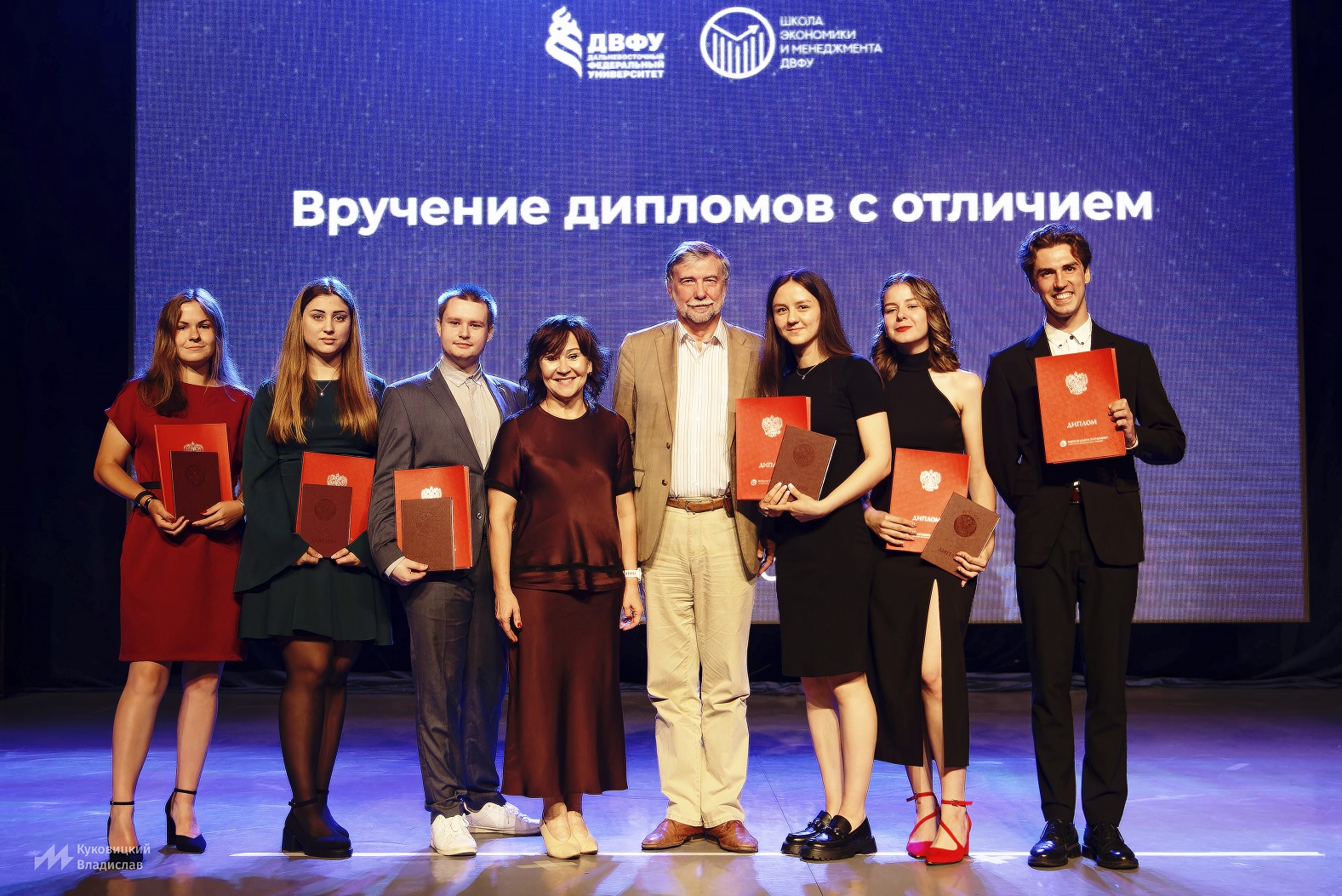 Совместная программа бакалавриата по экономике факультета экономических наук ВШЭ и Школы экономики и менджмента ДВФУ провела уже четвертый выпуск. Студенты программы осваивают базовые экономические дисциплины на углубленном уровне, а ВКР готовят под совместным научным руководством преподавателей НИУ ВШЭ и ДВФУ. Многие студенты программы становились призерами и победителями олимпиад, что позволит им получить преференции при поступлении в магистратуру ВШЭ. «Выпускниками программы стали студенты из самых разных регионов страны — от Краснодарского до Приморского края, и, что особенно примечательно, многие из них планируют остаться работать во Владивостоке даже после выпуска, что подчеркивает значимость программы для подготовки высококвалифицированных специалистов на Дальнем Востоке», — отметил академический руководитель программы, первый заместитель декана факультета экономических наук ВШЭ Сергей Мерзляков.