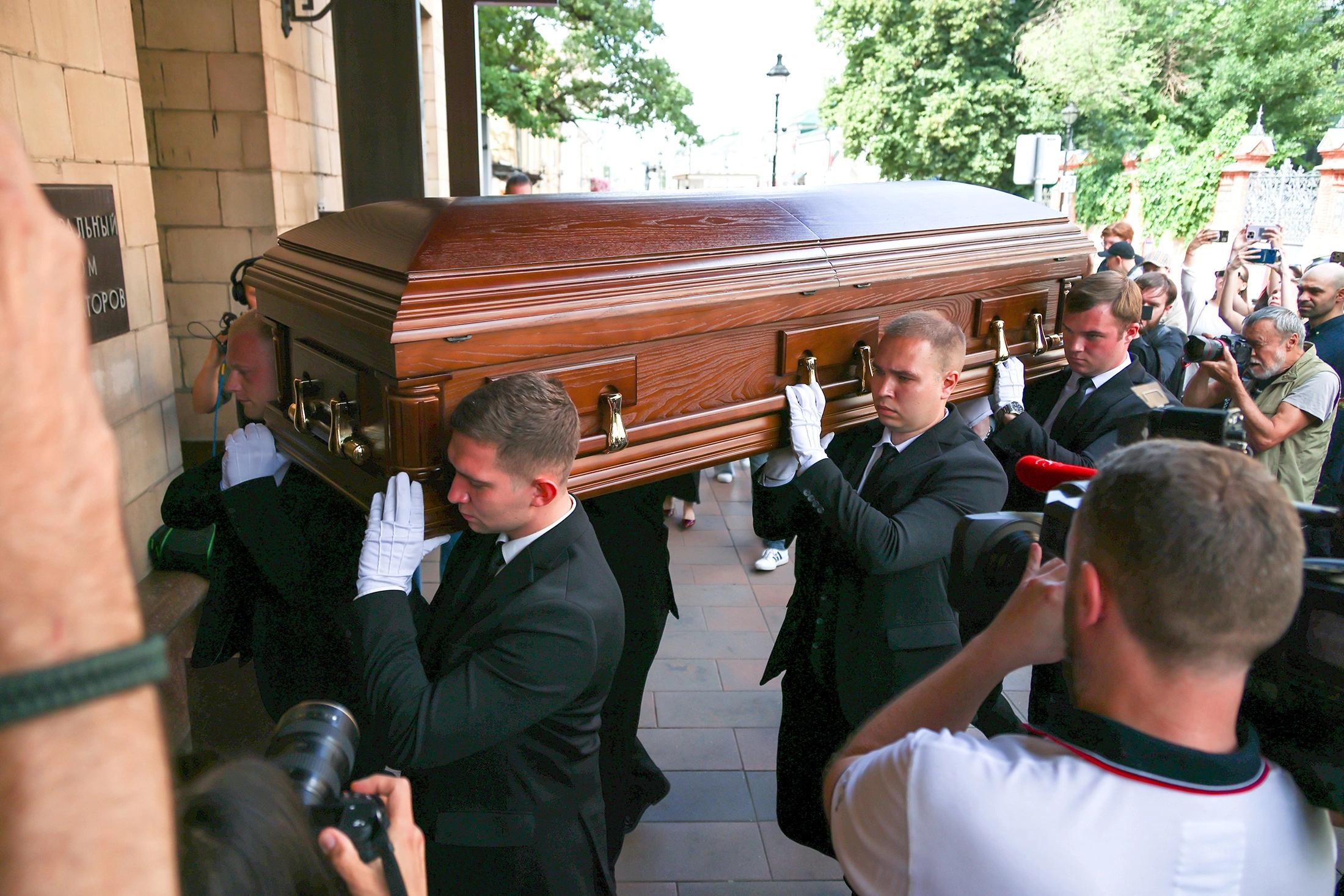 Церемония прошла в зале Центрального дома литераторов. Гроб с телом народного артиста вынесли из здания под аплодисменты.