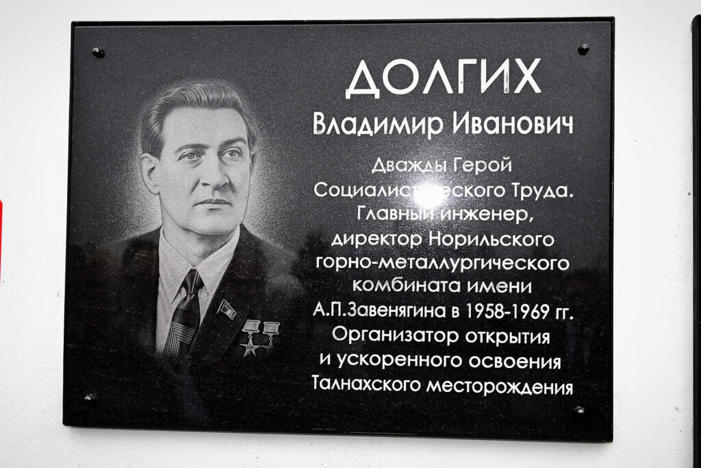 В Норильске, особенном для Долгих городе, становится все больше мест, связанных с его именем. Год назад, накануне 100-летия со дня рождения нашего выдающегося земляка, установили мемориальную доску на доме по Ленинскому проспекту, 1, где жил Владимир Иванович.