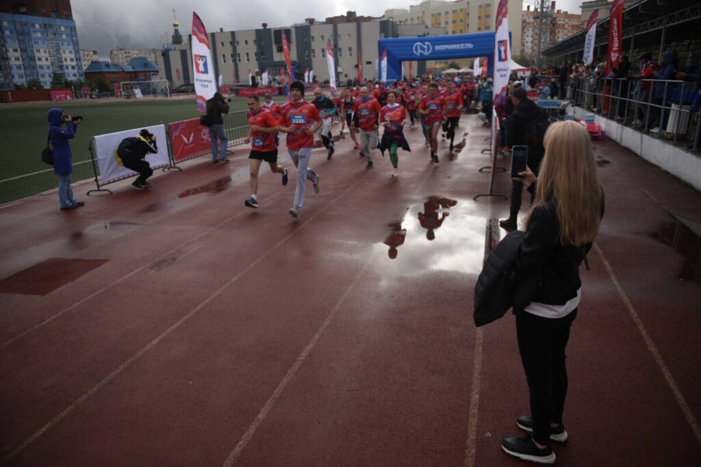 #НОРИЛЬСК. «Таймырский телеграф» – Стадион «Заполярник» вновь стал ареной для ежегодного спортивного праздника, объединившего сотрудников компании «Норникель» в корпоративном забеге. Около тысячи человек разного уровня подготовки испытали свои силы и выносливость на дистанциях 1, 5 и 10 километров.