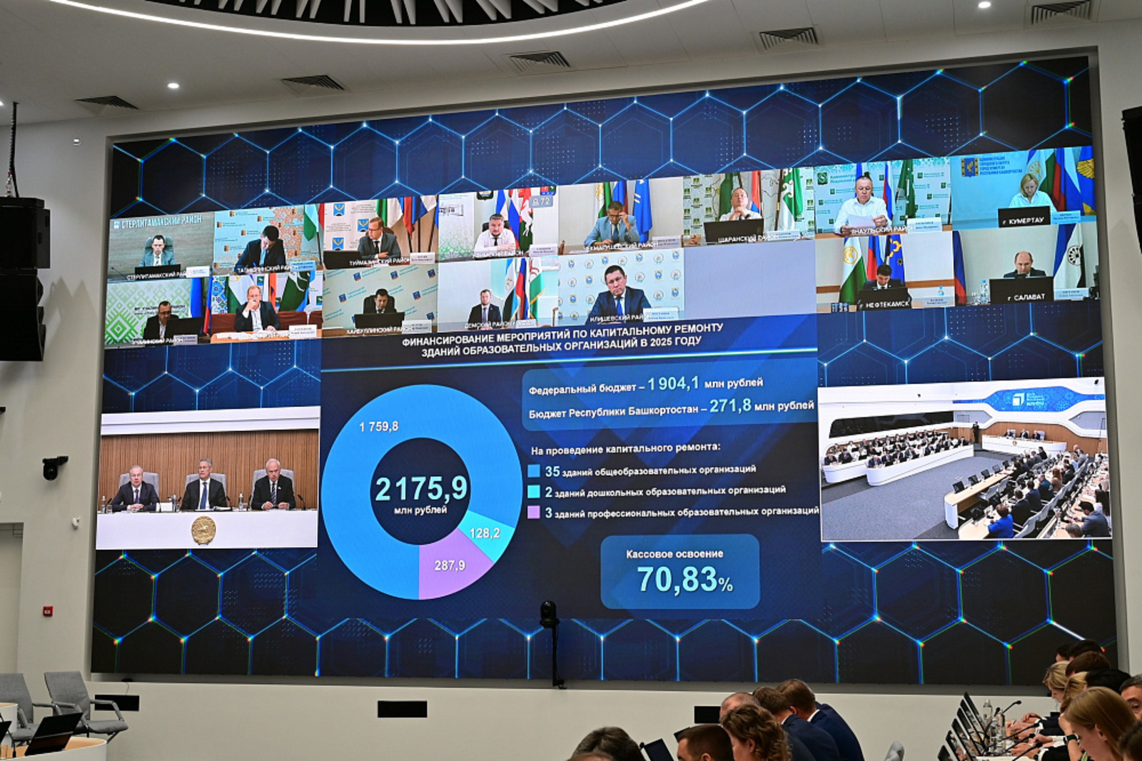 Радий Хабиров заслушал доклады муниципалитетов. Глава администрации Бирского района сообщил о высокой готовности школы № 8 (почти 92%) и планах завершения работ в срок. Глава администрации Буздякского района сообщил о завершении основных работ в школе села Канлы-Туркеево и планах сдачи объекта к 15 августа 2025 года.
