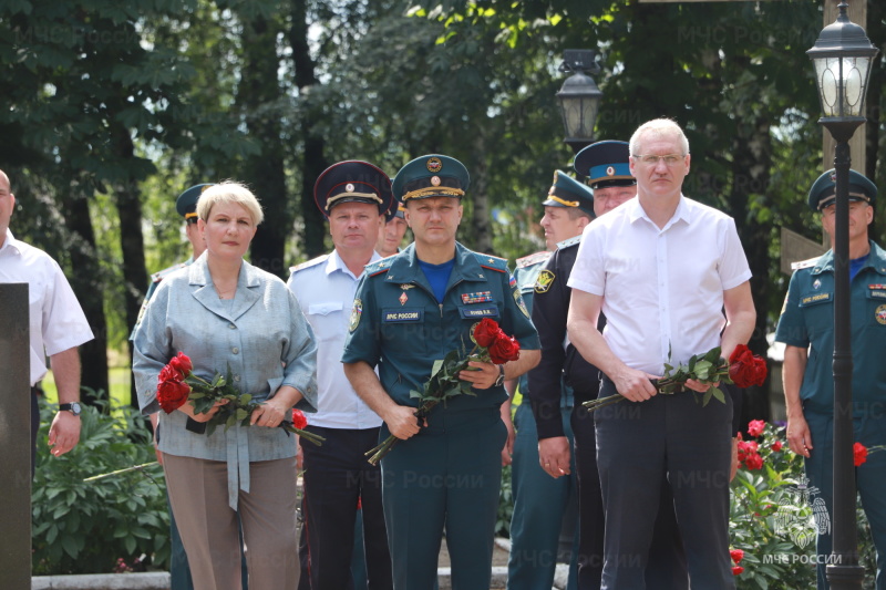 Мероприятие началось с церемонии возложения венков и цветов на Братском кладбище п. Касторное. Руководящий состав спасательного ведомства отдали дань памяти павших во время Великой Отечественной войны.