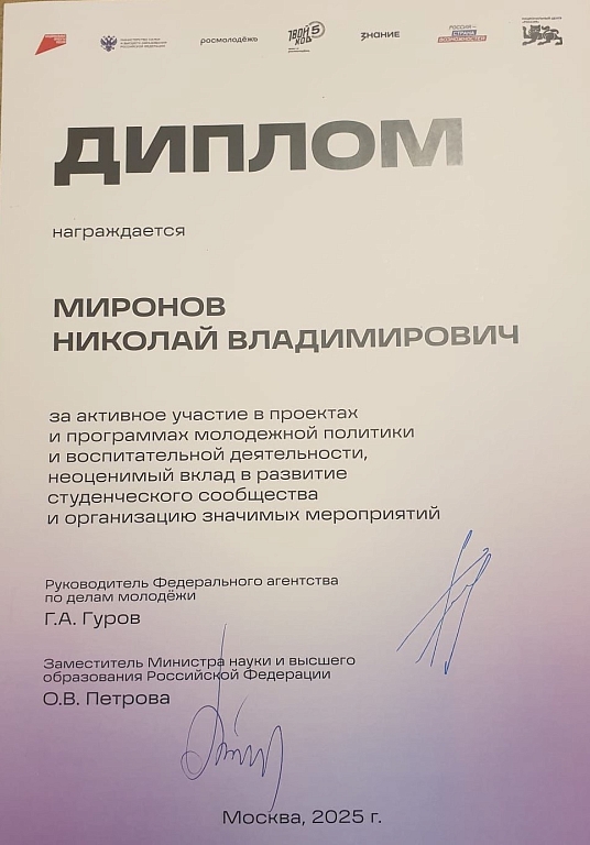 Всероссийский праздник «Твой выпускной» собрал 600 талантливых выпускников из более чем 80 регионов страны, среди которых были представители нашего университета: выпускник Николай Миронов и помощник директора Светлана Шмырева.