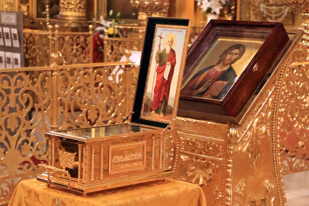 В митрополии напомнили, что десница (правая рука) апостола Андрея Первозванного – одна из наиболее почитаемых святынь Москвы. Согласно свидетельствам, оставленным средневековыми паломниками, в XII веке она хранилась в церкви Богородицы в Большом дворце Константинополя. В 1644 году святыня была передана монахам Патриаршего монастыря святой Анастасии Узорешительницы в Фессалониках, которые в свою очередь передали ее русскому царю Михаилу Феодоровичу Романову в благодарность за его заступничество перед турецким султаном и была положена в Успенском соборе Московского Кремля. После революции она попала в музей, а в 1988 году была возвращена верующим.