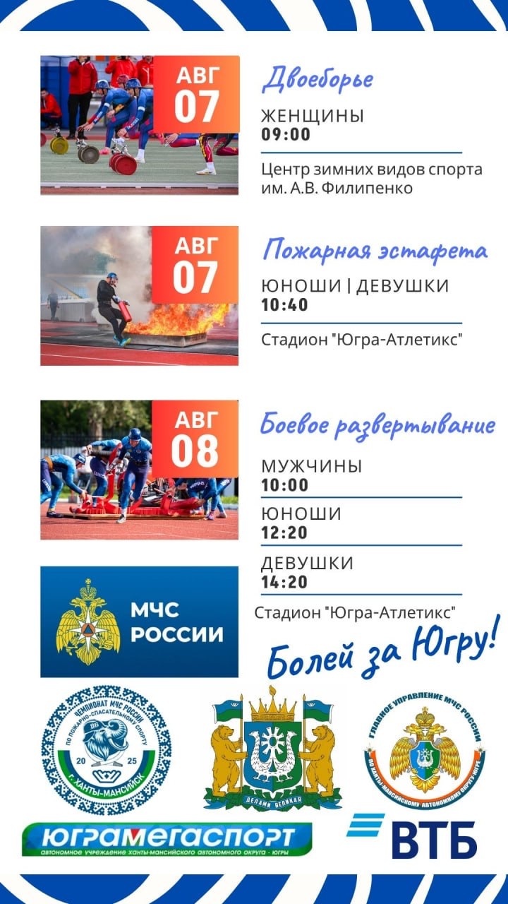 Главное управление МЧС России по Югре с радостью приглашает всех жителей и гостей региона посетить эти мероприятия. Приходите и станьте свидетелями настоящей силы, мощи и спортивного духа! Это уникальная возможность поддержать спортсменов и окунуться в атмосферу ярких побед и незабываемых эмоций.