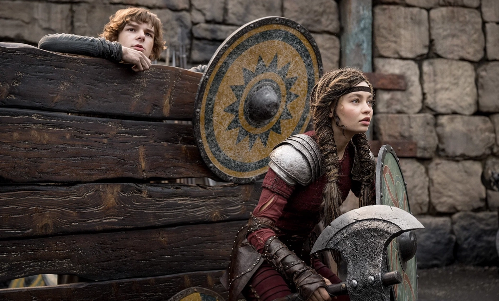 К актерскому составу тоже претензий не имеется. Милый Мейсон Темз в роли Иккинга, воинственная Нико Паркер в роли Астрид, забавный Ник Фрост в роли Плеваки. Достойная игра, не требующая от артистов прыжков выше головы. Только разве что удалось приятно удивить Джерарду Батлеру, вновь перевоплотившемуся в Стоика. С момента выхода мультфильма прошло 15 лет, а актер до сих пор благоговеет перед своим персонажем.