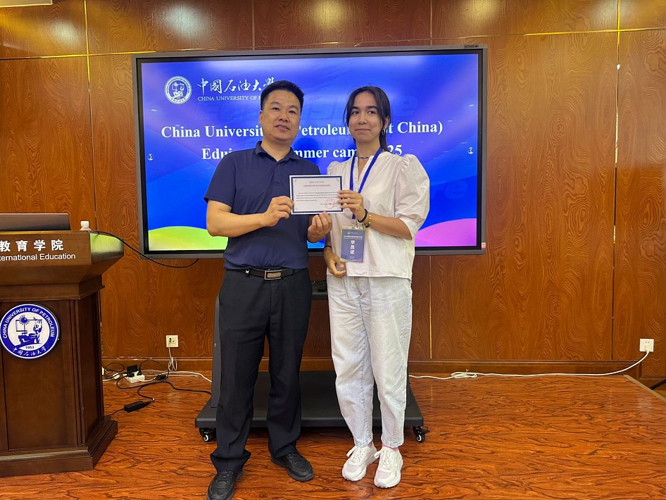 Заключительным этапом поездки была церемония закрытия. Начальник международного отдела Китайского нефтяного университета (Восточный Китай) Фанг Хуанг торжественно вручил сертификаты о прохождении летней программы «EduInspire Summer Programme 2025» всем участникам.