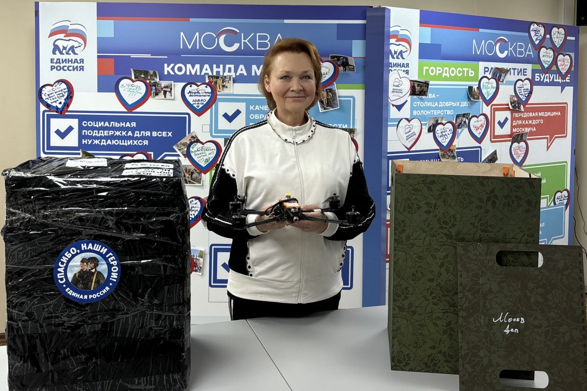 Депутат Мосгорудмы Людмила Стебенкова передала для бойцов подшефного полка № 1430 FVP-дроны.