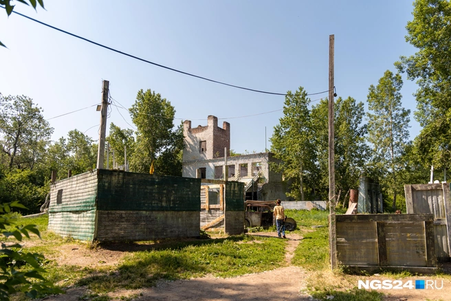 Спрятанный за деревьями частный дом, со слов сторожа, и правда начали строить для того, чтобы в нем жить, еще лет 15 назад. Но он «уже лет 10 недостроенный».