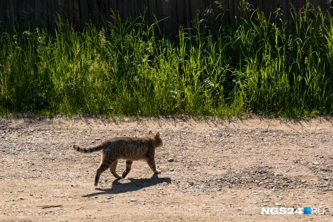Некусательный пес продолжает лаять. Со стороны боксов, не обращая на него внимание, вышел серый кот в полоску. «Вот и тигр», — представляет сторож. Кота зовут Яша.