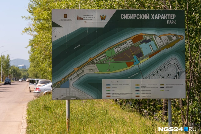 — Может, на въезде видели, там щит стоит: «Сибирский характер» — такой большой парк, который хотели на острове сделать. Он там уже лет шесть стоит, и никаких изменений нет, — описывает Сергей.