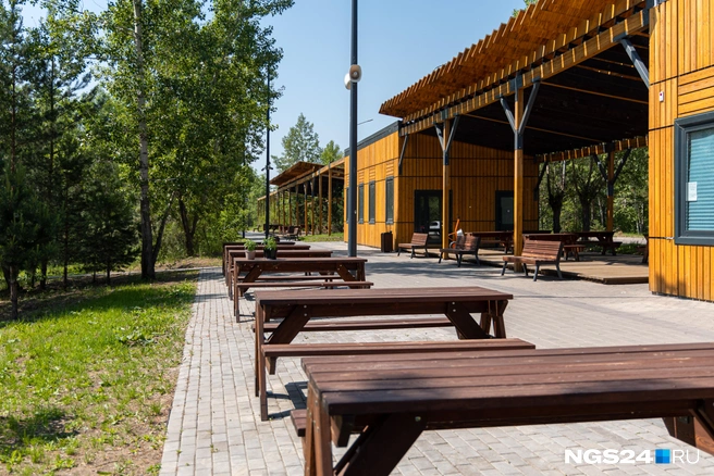 … и столики с лавками