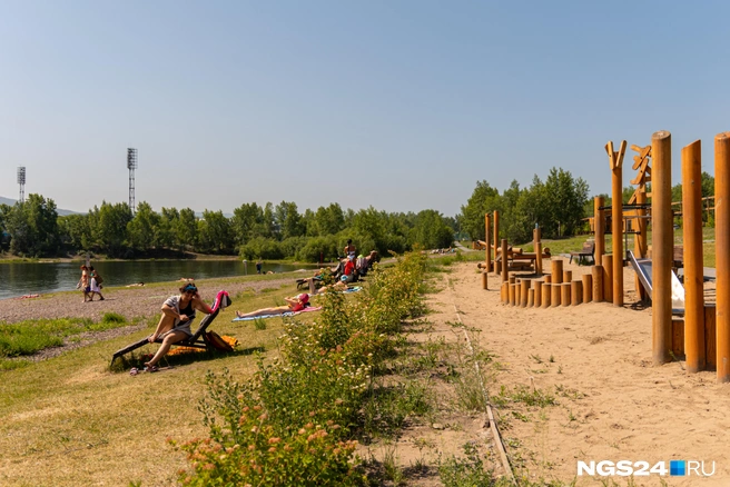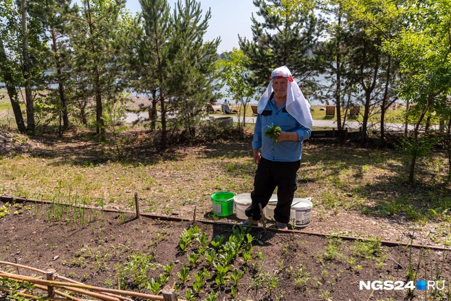 Тут есть песок, деревянные детские площадки, пирс, шезлонги, визит-центр с лавочками и столиками. Возле него на небольших грядках пожилой охранник умилительно выращивает зелень.