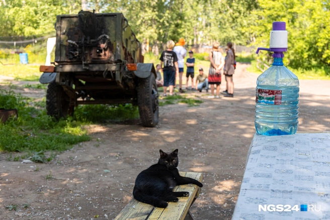 Сейчас на лавке в полутени возле общего стола по-царски лежит черный кот Маркиз, рядом потягивается пес Буба — «помесь овчарки и другой овчарки». С десяток-другой детей кучкуются и то ли готовятся к битве, то ли уже отстрелялись. С конца мая, по словам Сергея, в пейнтбольном клубе начинается горячая пора.