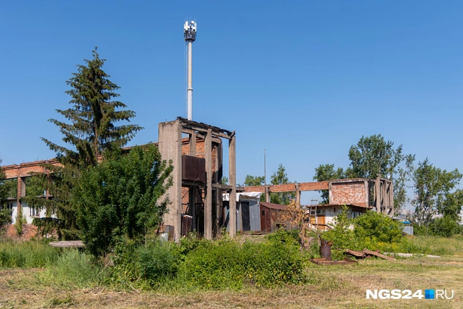 Дальше от берега, перед зданием бывшего гидроаэропорта сохранились руины авиаремонтного завода. Тут же работают гаражные боксы, над которыми громоздится вышка сотовой связи, а в стороне пониже — генерируют энергию солнечные панели. Напротив боксов за массивной зеленью и хилым металлическим ограждением прячется почти готовый частный дом на бетонных сваях с выходом к воде. Кажется, строили его для жилья.