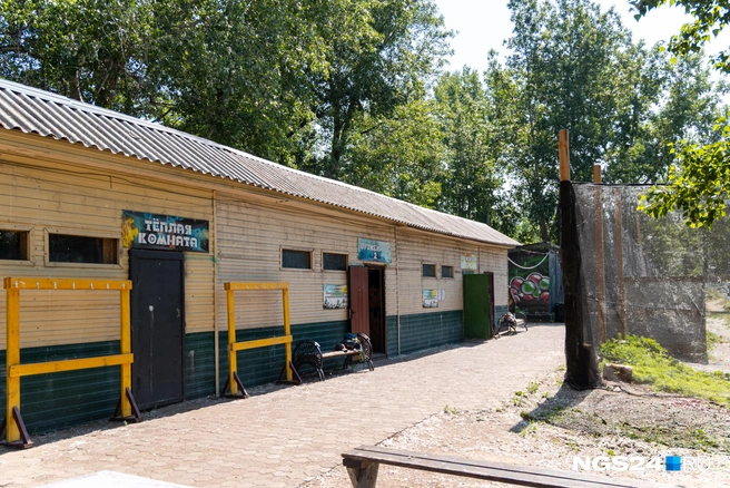За пристройкой открывается дворовая детская площадка, а под стенами в тени, спасаясь от жары, лежат сторожевые собаки. Увидев корреспондентов, как-то мучительно, будто ее отвлекают от важного дела, подрывается и рычит самая мелкая из них; особи покрупнее бросили пару не особо заинтересованных взглядов и, не пересилив лень, остались валяться. Впрочем, и одной злой собаки хватает, чтобы ретироваться.