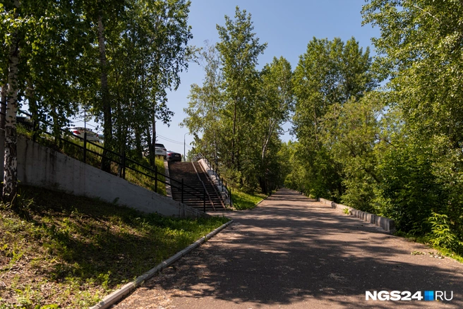 На асфальтовой тропе вдоль берега и в тени деревьев свежо даже в жару