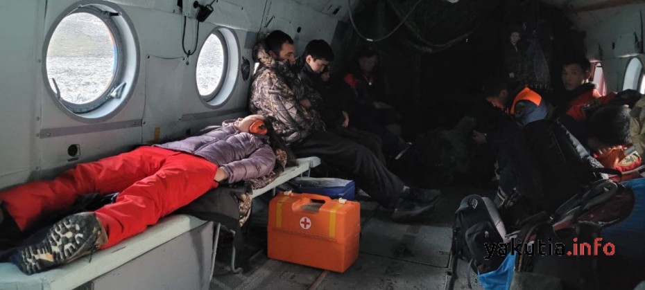 Вечером было решено направить помощь посредством борта Ми-8, находившегося на территории Оймяконского района. Экипаж вертолета весь предыдущий день активно участвовал в транспортировке грузов и перемещении жителей пострадавших районов. Уже поздно вечером борт прибыл на территорию происшествия, где руководитель спасательной операции Батыр Сейдалов возглавил группу специалистов-спасателей. Однако несмотря на точные координаты потерпевших, погода в горах оказалась крайне неблагоприятной, и попытка добраться до последнего лагеря, где находились тяжелораненые девушки, окончилась неудачей.