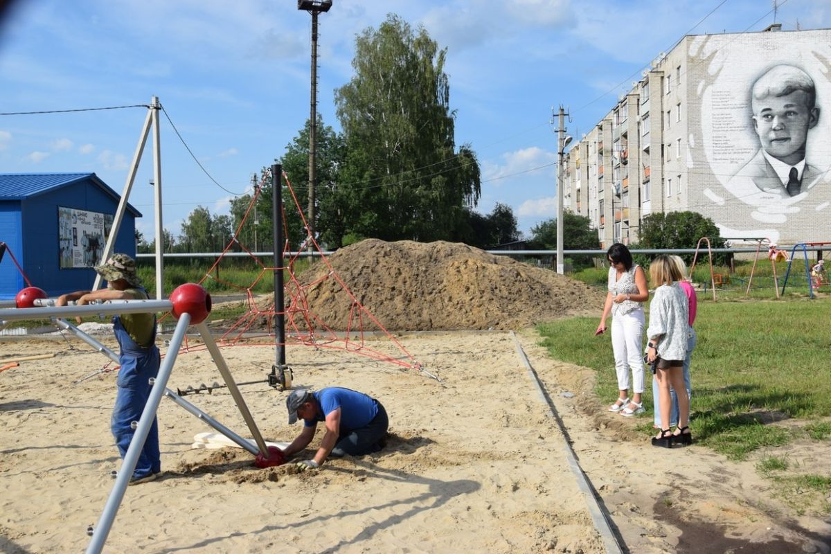 В Спас-Клепиках единороссы проверили ход строительства детской спортивной площадки.