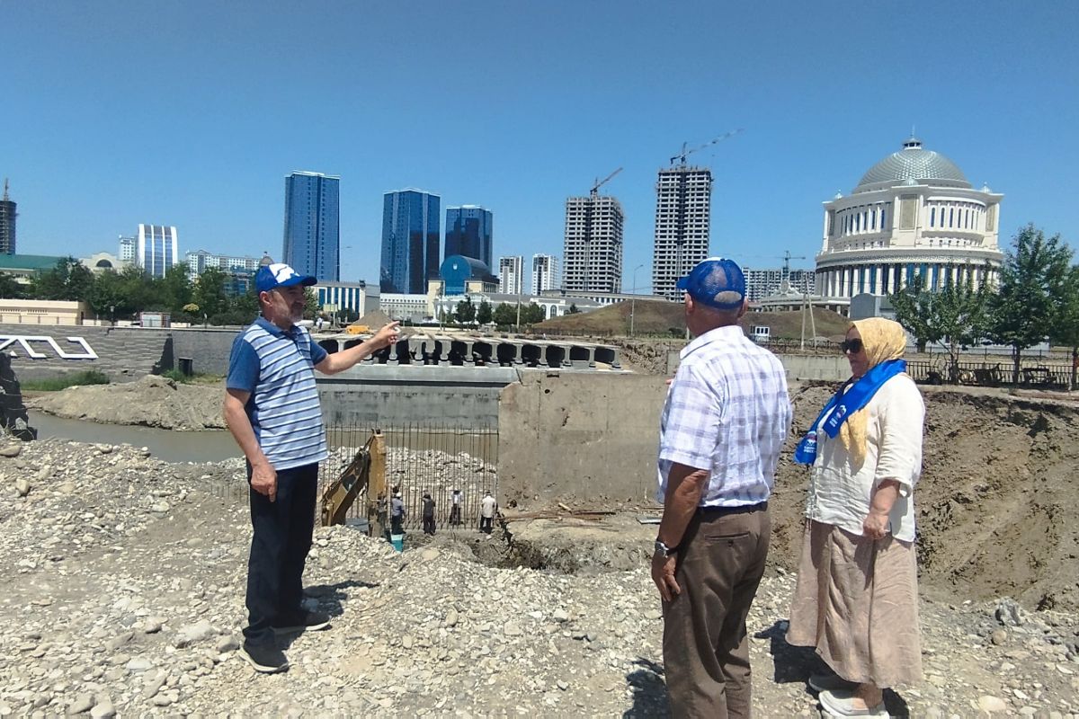 В Грозном «партийный десант» провёл мониторинг реконструкции моста через реку Сунжа. На объекте завершены работы по возведению опор, продолжаются работы по укладке блоков проектного строения, берегоукрепительных подпорных стен.