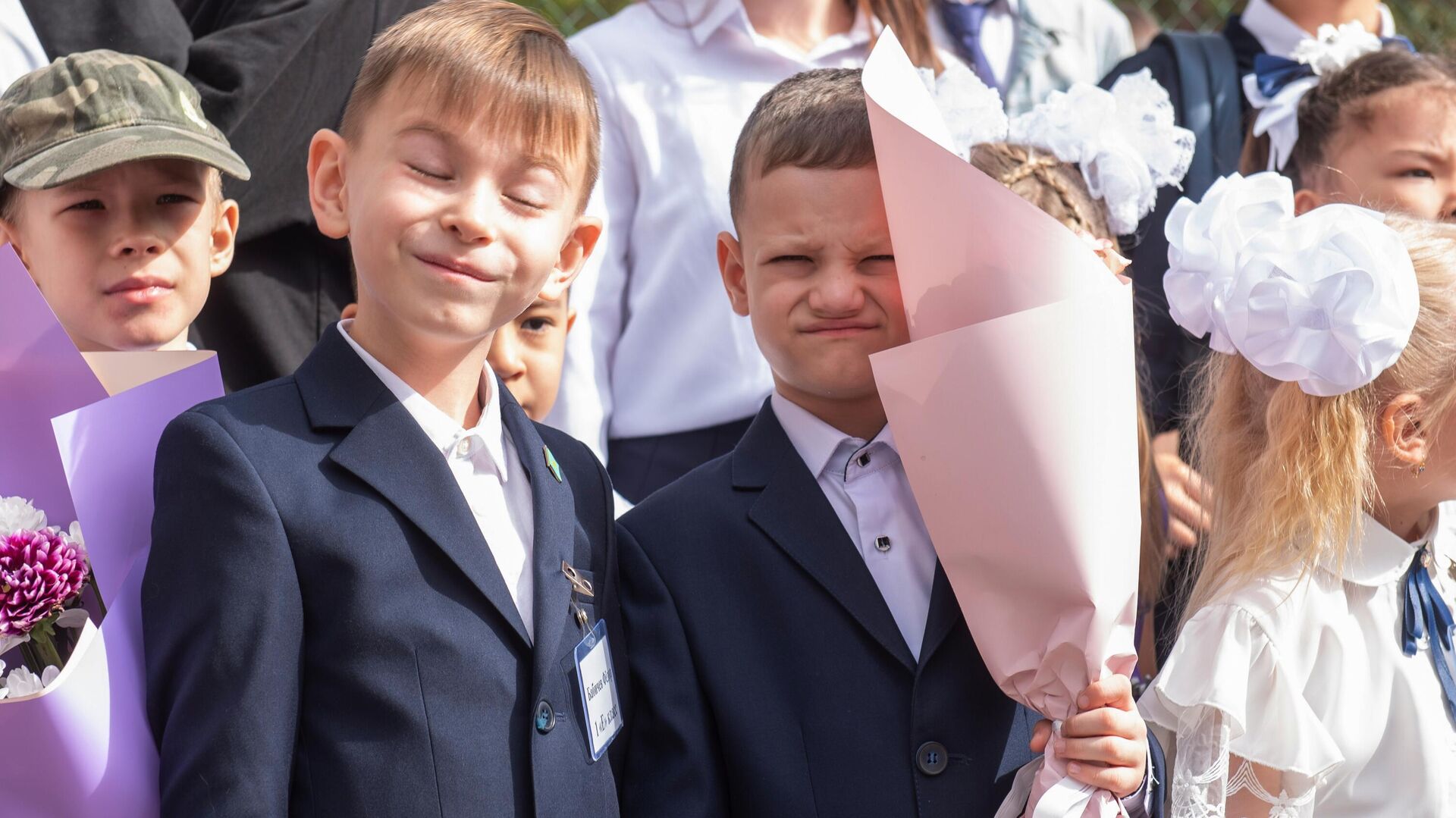 Ученики школы №95 в Алма-Ате на линейке 1 сентября, архивное фото