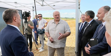 Александр Лукашенко пояснил, почему для посещения было выбрано именно это сельхозпредприятие и поле с озимым ячменем. Президент хочет составить общее впечатление о ходе уборочной кампании, а здесь как раз более-менее усредненные условия. Это касается и Минской области в целом. Если здесь хорошо, то и в среднем по стране ситуация будет неплохая – чуть хуже по северу в Витебской области, чуть лучше – на юге и в западных регионах.