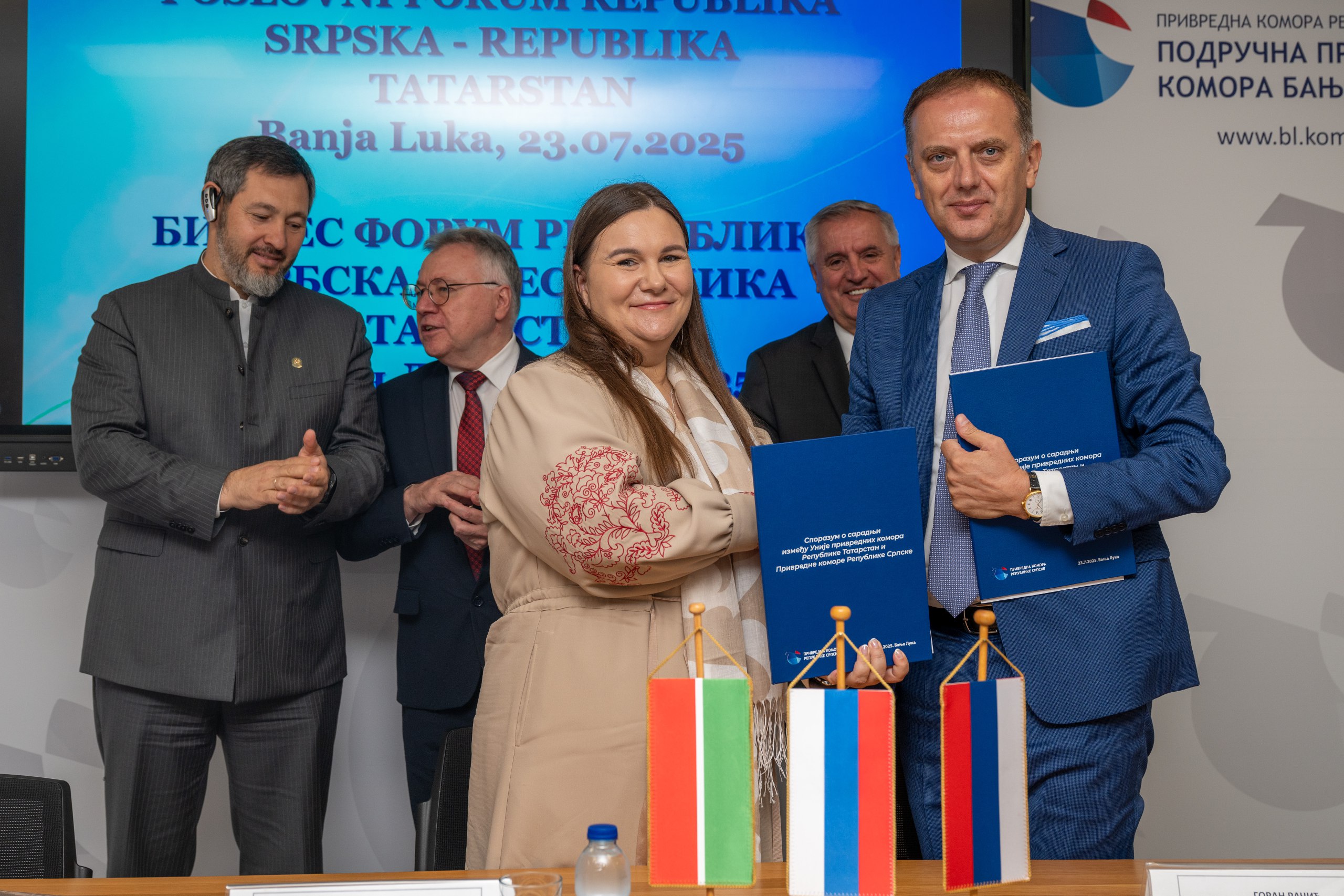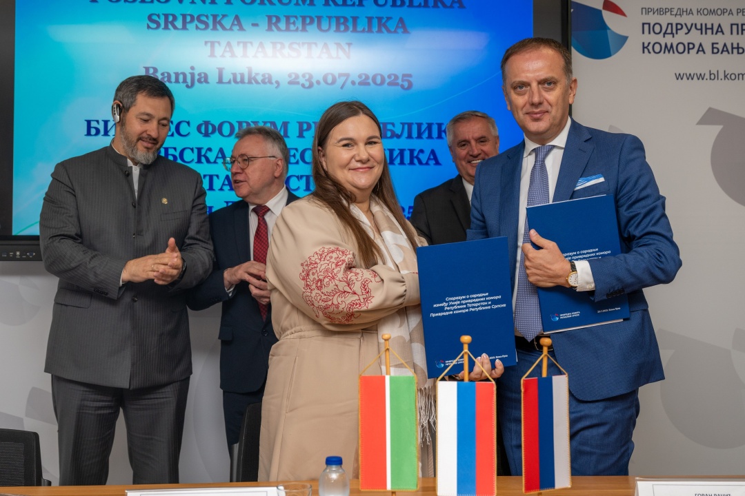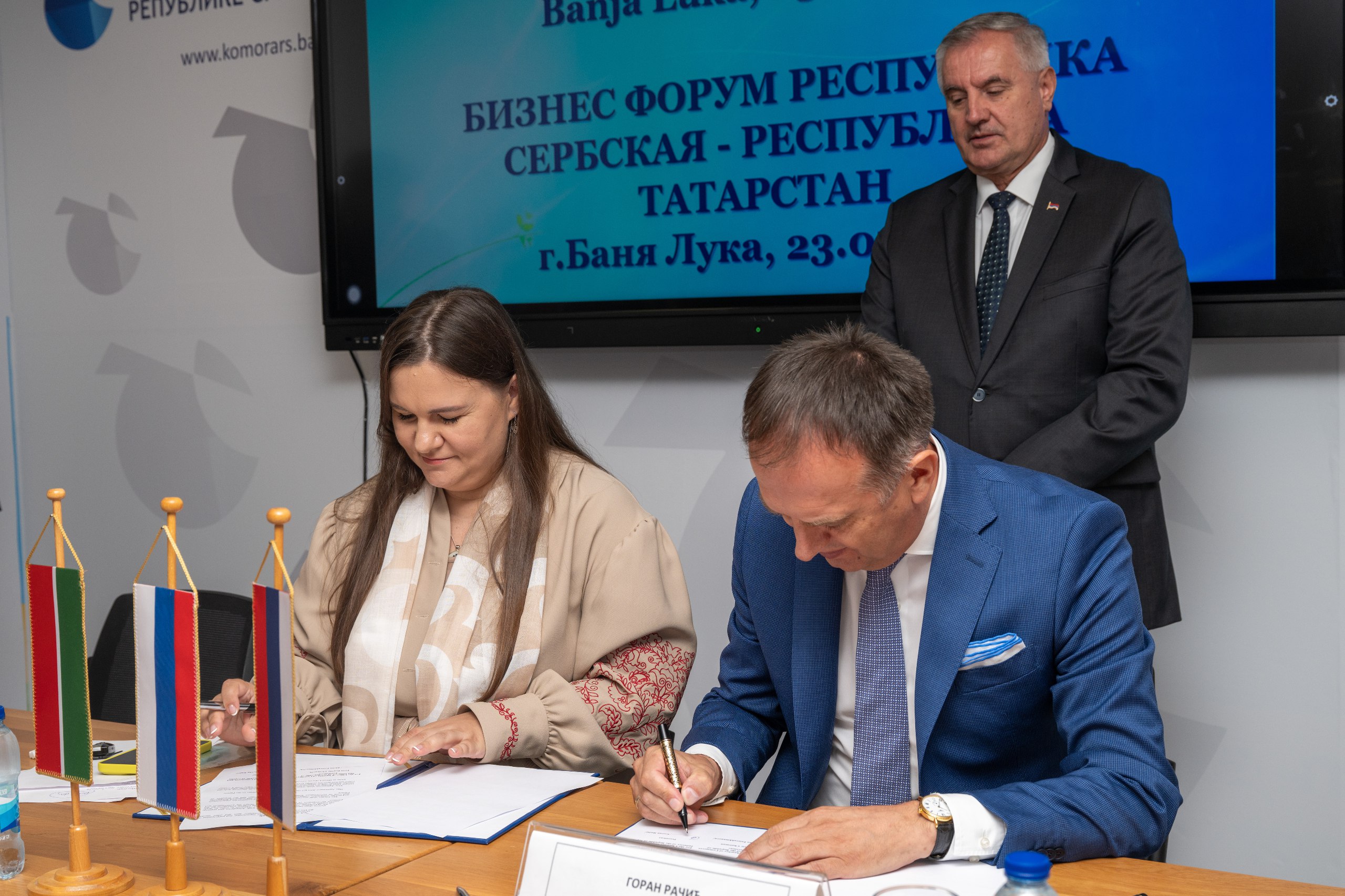 23 июля в ТПП Республики Сербской состоялся бизнес-форум «Республика Сербская – Республика Татарстан», на полях которого было подписано соглашение о сотрудничестве между Торгово-промышленными палатами Татарстана и Республики Сербской.