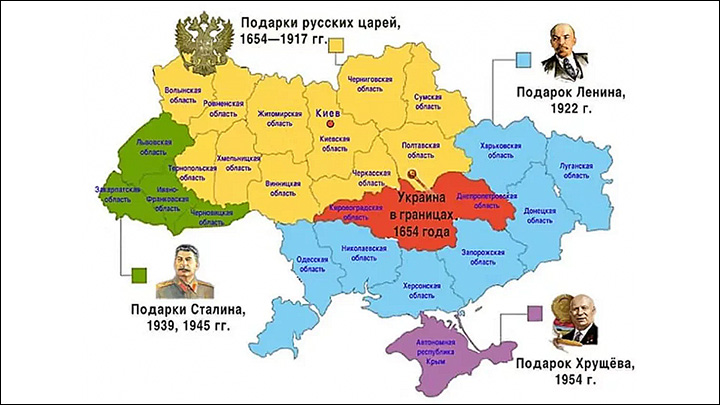 Вернуться "к тому, что было"? Почему бы и нет? Зеленский постоянно предлагает вернуться к границам 1991 года. Но почему 1991-го, а не, к примеру, к 1922 года, когда создавался СССР? Ведь Украина — правопреемница Украинской ССР, не так ли? Только учтём, что при создании Украинской ССР не было не только Крыма, но также Харькова, Херсона, Одессы, Донецка и Луганска. Если копнуть ещё дальше, то, как свидетельствует один из лидеров харьковской "Русской весны" 2014 года Сергей Моисеев: