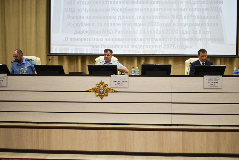 25 июля в МВД по Чувашской Республике прошло заседание коллегии Министерства по подведению итогов деятельности органов внутренних дел за 6 месяцев 2025 года, которое провел министр внутренних дел по региону генерал-майор полиции Сергей Кондрашов. В мероприятии приняли участие руководители правоохранительных органов Чувашии, подразделений МВД и территориальных органов внутренних дел МВД России на районном уровне.